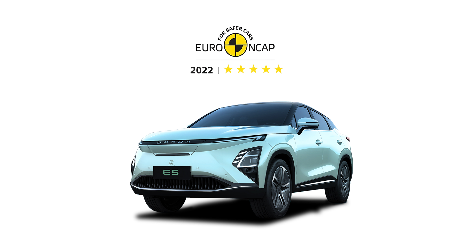 OMODA 5 EV je na varnostnem testu Euro NCAP prejela najvišjo oceno 5 zvezdic - dokaz vrhunske zaščite, natančnega inženirstva in popolne varnosti v vsakem trenutku.